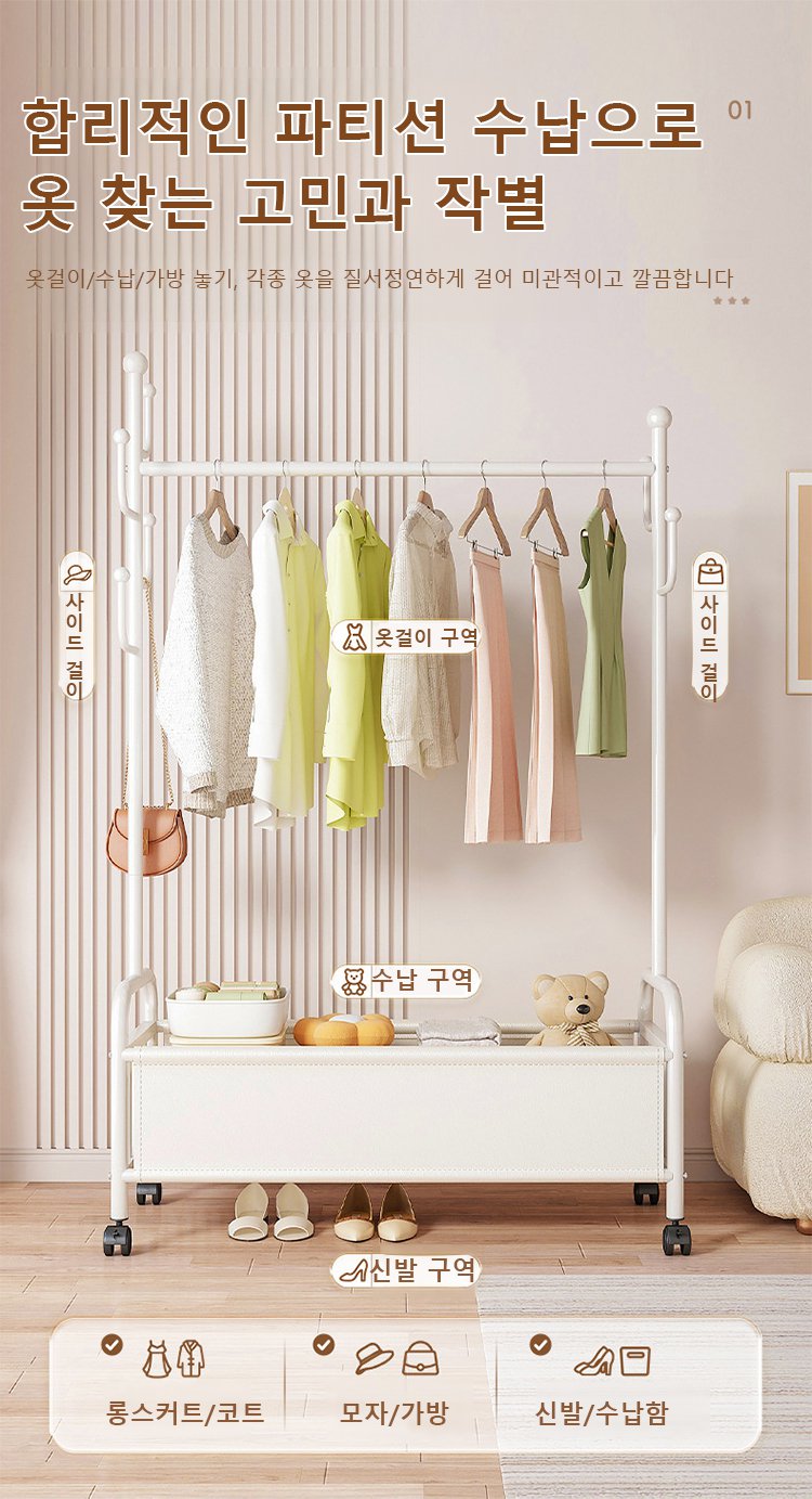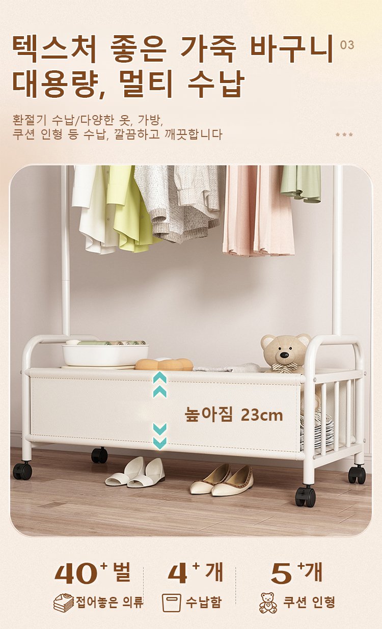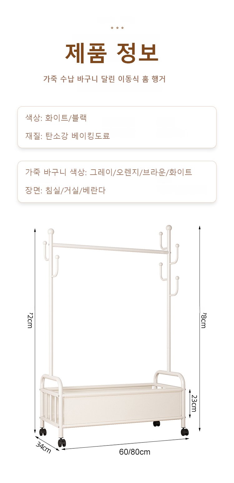 가죽 수납 바구니 달린 이동식 홈 행거