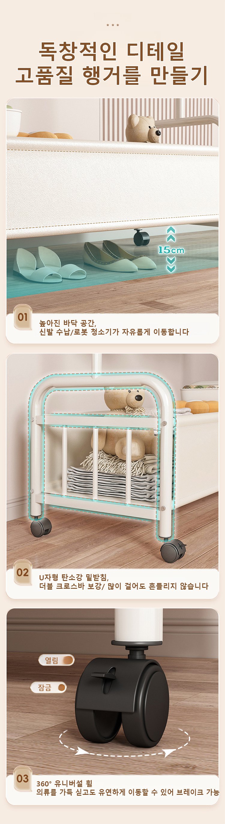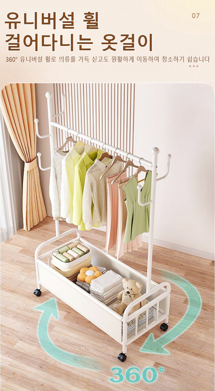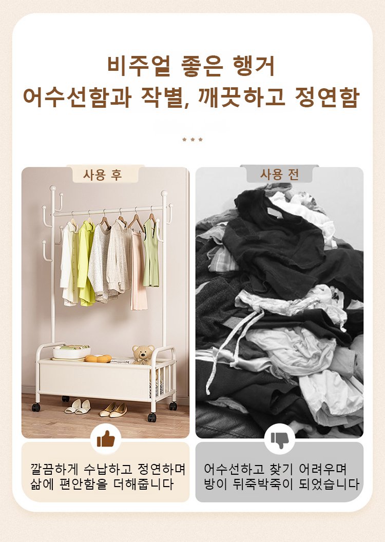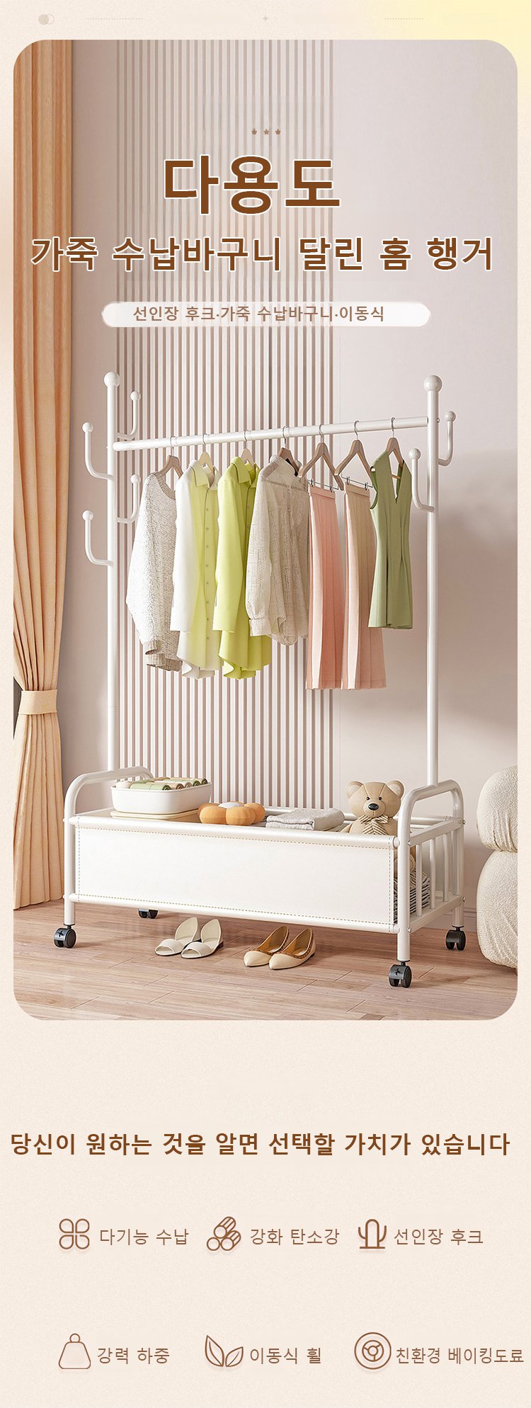 가죽 수납 바구니 달린 이동식 홈 행거